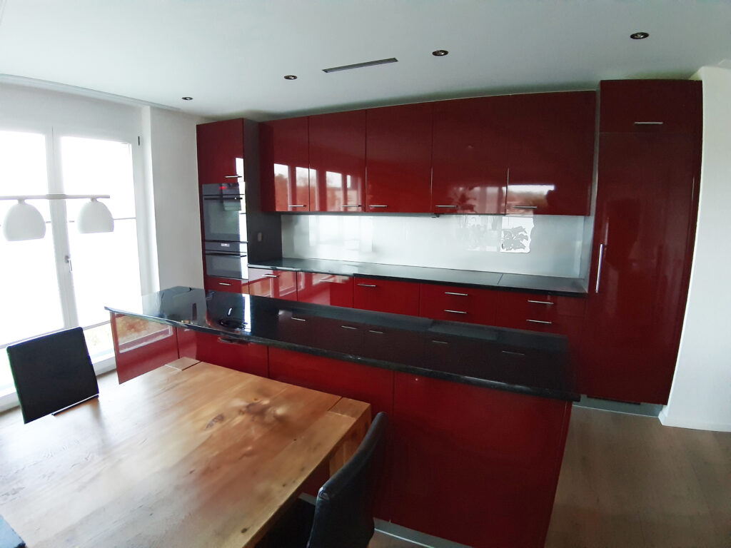 Die Bordeauxroten Hochglanzfronten waren extrem heikel bei der Sonneneinstrahlung.